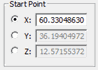 此区域显示起点的 XYZ 值。您也可使用此区域定义或调整选定轴的值。其他两条轴根据交线计算。 |
