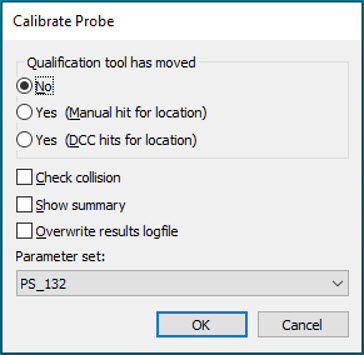 AUTOCALIBRATE/PROBE, PARAMETER_SET=, QUALTOOL_MOVED=Y/Y/N, CHECK COLLISION=Y/N, SHOW_SUMMARY=Y/N, OVERWRITE_RESULTSFILE=Y/N
