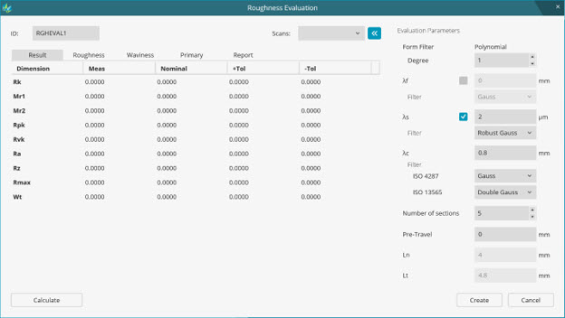 计算按钮 - 要重新评估粗糙度扫描,请选择此按钮。如果需要,您可以更改参数并选择计算按钮。