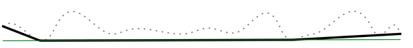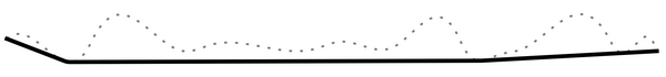 Illustration of a void-filtered surface. The dotted gray line is the real surface feature. The solid black line is the void filtered surface. The space between the real feature surface and the void filtered surface are the voids.
