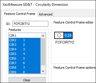 3. In the Feature Control Frame editor, in the FCF, click on the Feature Tolerance portion, and define a tolerance of 0.25.