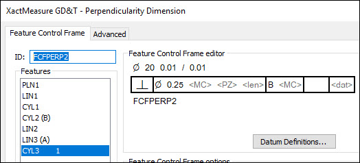 1. Select Insert | Dimension | Perpendicularity to open the XactMeasure GD&T dialog box.