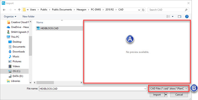 Preview - This area of the dialog box shows the CAD image for .prg files. This area remains blank for all the other type of files.