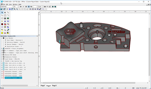 When working with the Custom Report Editor, you may find it helpful to hide your usual PC-DMIS toolbars and windows, thereby freeing up some screen space. If you work frequently with this editor, you may want to create a stored screen layout for it. For information on layouts, see the "Window Layouts Toolbar" topic in the "Using Toolbars" chapter.