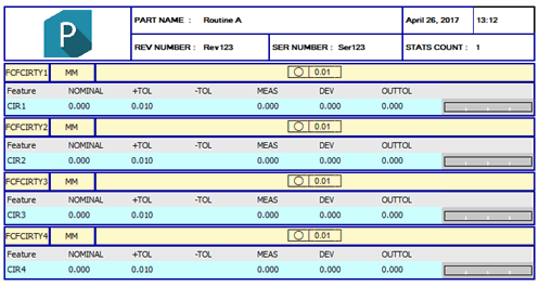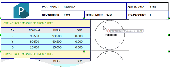 Select the label in your report for the CIR1 feature. You should already have four Circularity dimensions. If not, create them now, one for each circle feature.