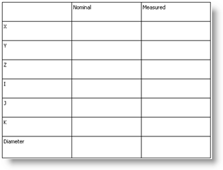 Starting with the first row, and first column, and then moving down through the other rows, type "X", "Y", "Z", "I","J" ,"K", and "Diameter". This fills in rows 2 through 8 in column 1. Your GridControlObject should look like this:
