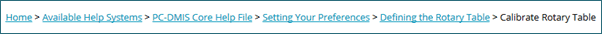 The Breadcrumbs area is not shown on the main PC-DMIS Help Center page. The image above is to show the general location of the Breadcrumbs area on Help topic pages.