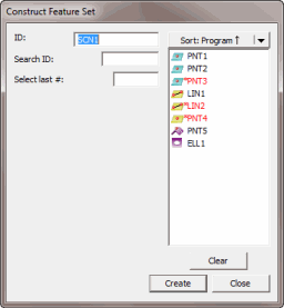 Click the Create button. The new feature set is given a feature ID and is placed in the Graphic Display window.