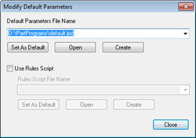 If you want to make the file listed in the Default Parameters File Name box the default file, click Set as Default. This copies any inspection planner settings for plan features contained in that file and sets the equivalent default registry entries to those settings.