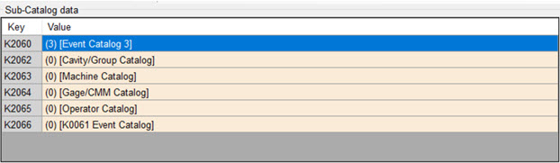 Suppose for Key K2062, the tooltip displays Catalog for K0010 (Machine Number). This indicates that K2062 records the value of the sub-catalog for K0010, which is for a machine number.
