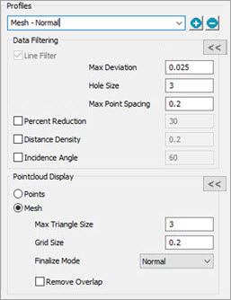 激光数据收集设置对话框的轮廓部分允许您从预配置的扫描轮廓列表中进行选择。您也可以创建自己的扫描轮廓。通过网格显示选项进行扫描时,必须使用线筛选器。