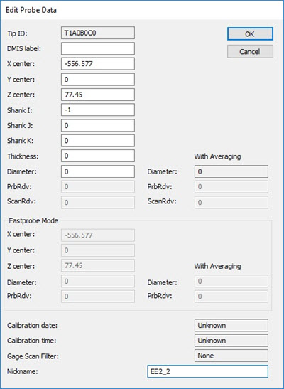 Select the tip from the Active tip list and then click Edit to open the Edit Probe Data dialog box.