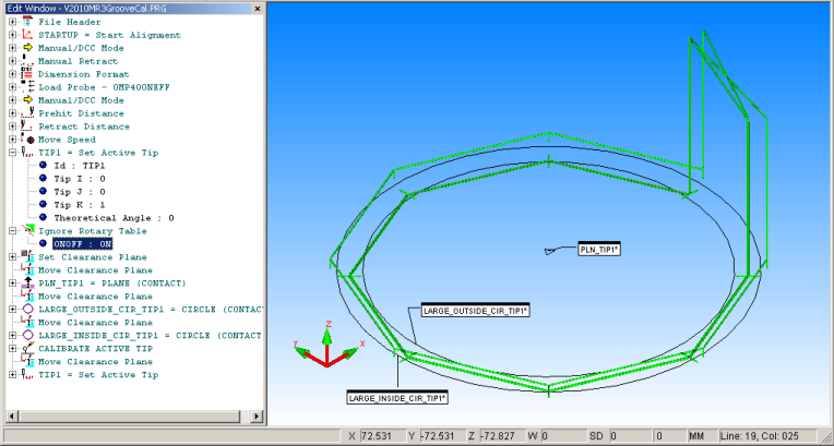 PC-DMIS NC has been adapted by building on dialog boxes found in PC-DMIS Vision to obtain a groove calibration where both the inside and outside diameters are probed. An example of a calibration groove is shown below: