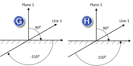 PC-DMIS gives a positive angle if it calculates the angle in a counter clock-wise direction. It gives a negative angle if it calculates the angle in a clock-wise direction.