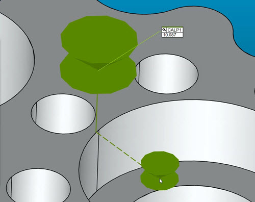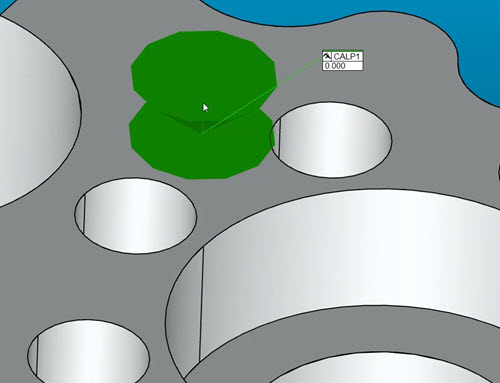 Search Distance: The default value is 2 mm. This value defines the length, from nominal, on either side of the picked point. The search distance along with the caliper tip shape creates a cylindrical zone. All data within this zone is evaluated to determine the caliper high point.