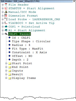 Click Create to define the caliper and add it to the commands in the Edit window.