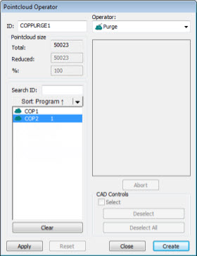 From the COP command referenced by this operator, the PURGE operation removes all data points that do not belong to this operator. The PURGE operation is irreversible and affects all other operator commands that refer to the same COP container, so use the operation with caution.