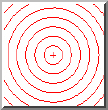 The Radius Chart gage can be used to determine the Center Location (X and Y) as well as the Spacing between concentric circles as read form the Gage tab of the Probe Toolbox or the corner of the Vision tab. |