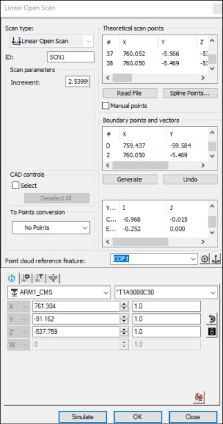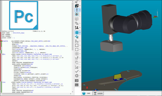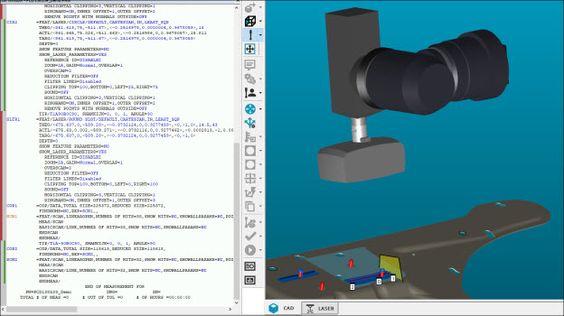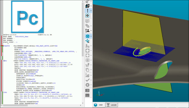 If you select the Draw Laser Working Area check box, CMS probe parameters draw the trapezoid with the correct dimensions. This functionality helps with simulation in Offline mode. This feature is available for Laser Auto Features and laser scans.