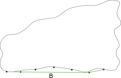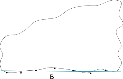 For datum widths, the measured surface points are projected to the center-plane of the surface envelope, and the axis of the mating envelope is the minimal convex polygon that contains all the projected points.