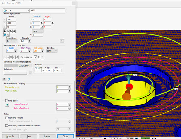 Example after selecting the Ring Band plane to extract 2D feature: Z nominal = 70