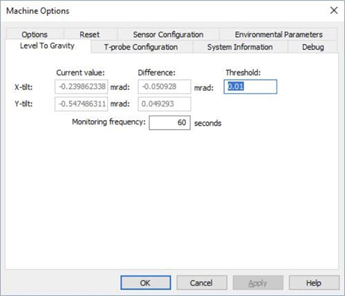 Cuadro de diálogo Opciones de máquina - Ficha Nivelar con gravedad