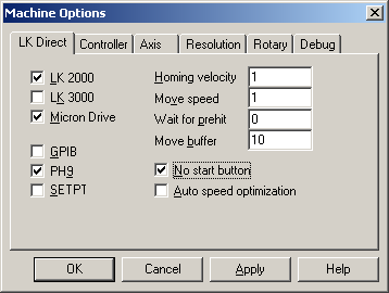Auto speed optimization - Certain LK controllers support Auto Speed Optimization, a controller feature that drives each axis at its maximum independent speed for each move. If you know that your controller supports this then you can select this option.