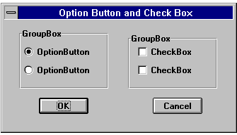 Begin Dialog GroupSample 31,32,185,96,"Option Button and Check Box"