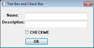 Begin Dialog DialogName1 60, 60, 160, 70, "Text Box and Check Box"