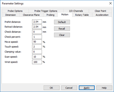 有关“移动速度”和其他移动选项的更多信息,请参见 PC-DMIS 核心文档“设置首选项”一章中的“参数设置:移动选项卡”。