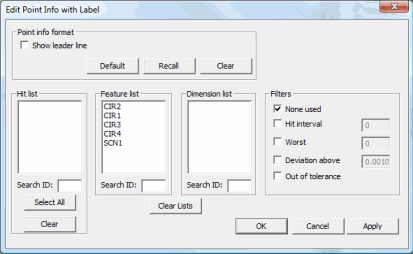 PC-DMIS 也将记住所选的模板,用到被添加到自定义报告编辑器里的 AnalysisWindow 随后对象。被定义的模板也会存储在 PC-DMIS 设置编辑器报告部分下的 LastUsedPointInfoLabel 注册表项。