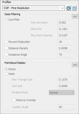 这是新安装的默认CMM激光扫描轮廓。 选择此轮廓后,PC-DMIS取消选中此对话框上设置的所有过滤器,并将激光传感器中的所有点存储在COP中。 由于这是默认轮廓,因此无法对其进行编辑。 |