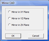 使用该对话框可创建零件的镜像图。选择要在其中镜像零件的平面(轴),单击确定。PC-DMIS 在选择的CRO上显示镜像的 CAD 模型。有关在“图形显示”窗口中镜像 CAD 的其他信息,请参见“转换 CAD 模型”。