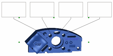 绘制从标签到 CAD 上的实测特征或者 CAD 上的标称特征的指引线。参见标签布局向导中的说明。