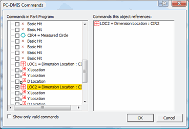单击确定。对话框关闭,PC-DMIS现在参考被选对象里的新命令。