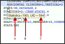 示例命令信息显示(A)命令说明字符串,(B)命令类型编号和(C)唯一编号标识符(UID)。