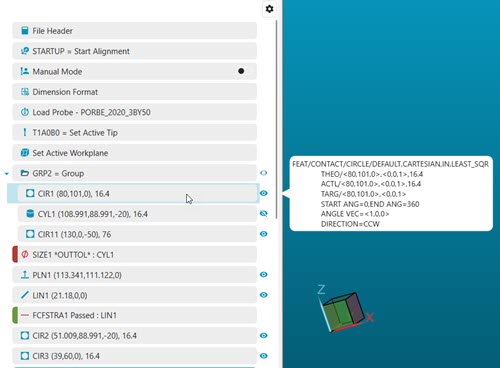 In Summary mode, PC-DMIS displays an icon that indicates the execution status. For more information, see "Marking and Unmarking Commands in Summary Mode".