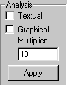 The Analysis area of this dialog box allows you to choose to view the dimension(s) selected from the Dimension List box in either a graphical or a textual readout.