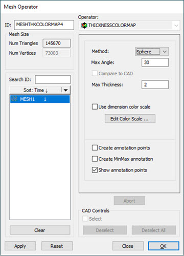 When you measure the thickness of a Pointcloud data object, you cannot select a method to use. PC-DMIS automatically uses the Sphere method.