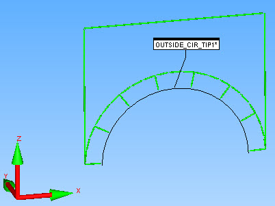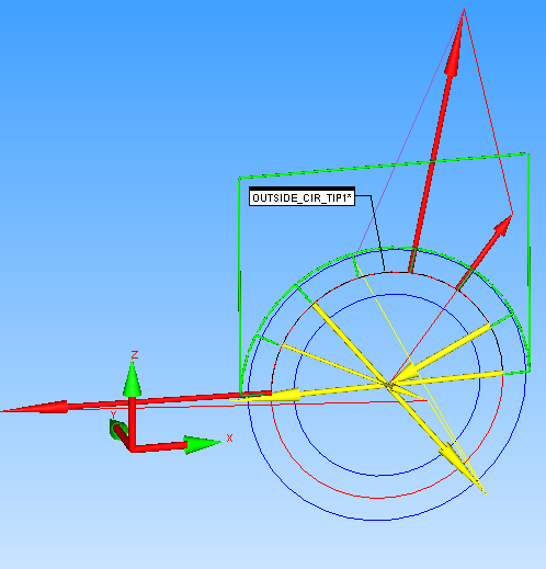 The calibration measurement routine that is created uses a PC-DMIS Auto Circle feature (OUTSIDE_CIR_TIP1) as described below:
