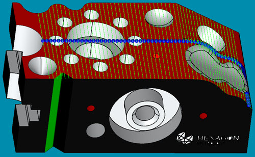 UniScan es una manera automatizada de crear comandos de escaneado que cubran las caras seleccionadas, respetando al mismo tiempo el ángulo de incidencia máximo del sensor láser. A continuación puede utilizar las puntas de sonda y también el volumen de la máquina.