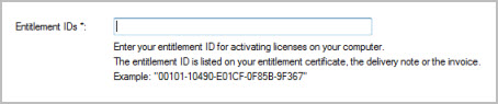 Click Activate new licenses and type or copy your Entitlement ID in the field.