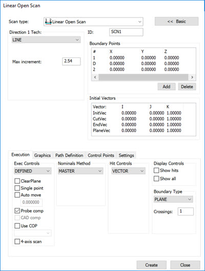Be aware you must set the density points setting high so your controller has time to react to changes in the curvature of the scan trajectory. You can also decrease the speed of the scan to help PC-DMIS stay in contact with the part throughout the scan process. This is required for rough surfaces as well as bent surfaces where the scan trajectory contains high curvatures.