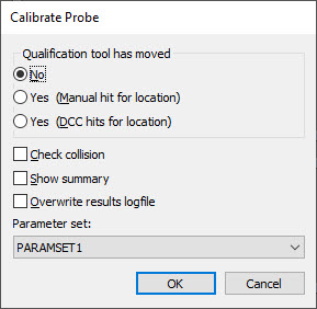 AUTOCALIBRATE/PROBE, PARAMETER_SET=, QUALTOOL_MOVED=Y/Y/N, CHECK COLLISION=Y/N, SHOW_SUMMARY=Y/N, OVERWRITE_RESULTSFILE=Y/N