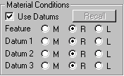 You can select material condition modifiers for Position, Parallelism, and Perpendicularity dimensions.