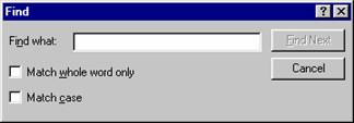 The Edit | Find menu option brings up the Find dialog box.