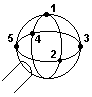 5 点での球自動要素の例