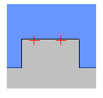 開いたエッジ上に1箇所のヒットを取ります。これにより、ノッチの幅が定義されます。
