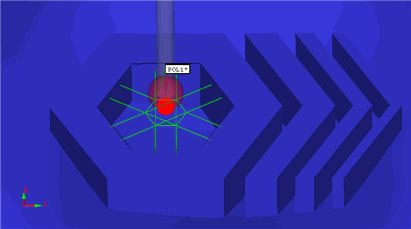 グラフィックの表示ウィンドウで目的の多角形要素を1回クリックします。PC-DMISは多角形の中心点の情報を取得し