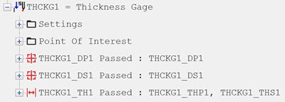 PC-DMISは、厚さゲージコマンドによって生成された要素を内部コマンドと見なします。このため、整列、構築、寸法、および割り当てでそれらを使用できます。